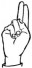 На ћирилици написано АЛЕКСАНДРА РАДУШКИ састоји се из 17 слова [?]. Исписано ћириличном једноручном азбуком за глувонеме: